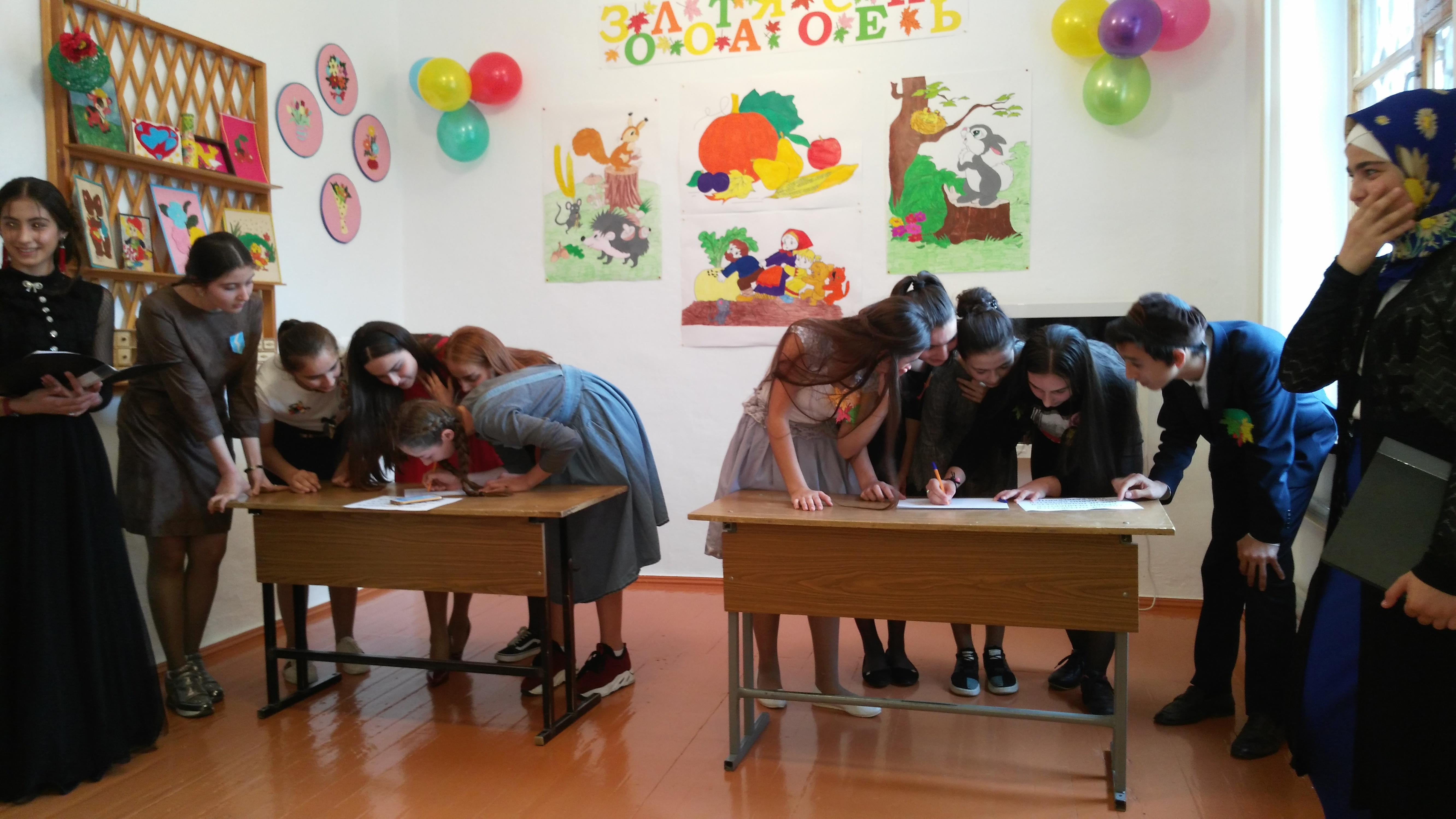 Болельщики поддерживали участников веселым настроением, задором и кричалками. В результате напряженной и интересной борьбы победу одержала команда «Молния», опередив команду «Листопад» на 2 бала. В завершении праздничного вечера учащиеся исполнили песню «Осень в лесу!».